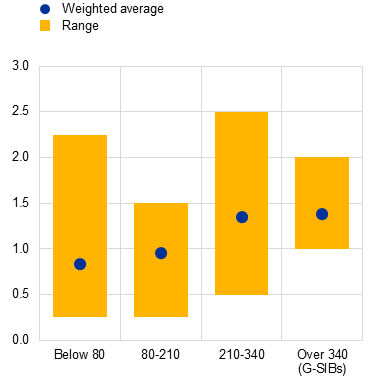 O-SII buffers, as set by national authorities, vary greatly across BU countries. In its principles for assessing domestic systemically important banks, the Basel Committee on Banking Supervision suggests that the policy judgement on national O-SII buffer levels should be guided by country-specific factors like the size of the banking sector relative to GDP (see BCBS, 2012). Despite the reduction in heterogeneity which followed the introduction and subsequent revision of the ECB’s national floor, there remains unwarranted heterogeneity that are not explained by BU country characteristics or other economic factors (see, for example, ECB, 2022a, and Greco et al., 2025). Notably, the heterogeneity in O-SII buffer-setting apply to some of the most systemically important banks in the banking union (Chart 1). Furthermore, Sigmund (2021) finds that national regulators’ preferences are a relevant determinant of heterogeneity in O-SII buffers, while Dimitrov and van Wijnbergen (2023) show that banks’ contributions to systemic risk in Europe are not fully aligned with the O-SII buffers.